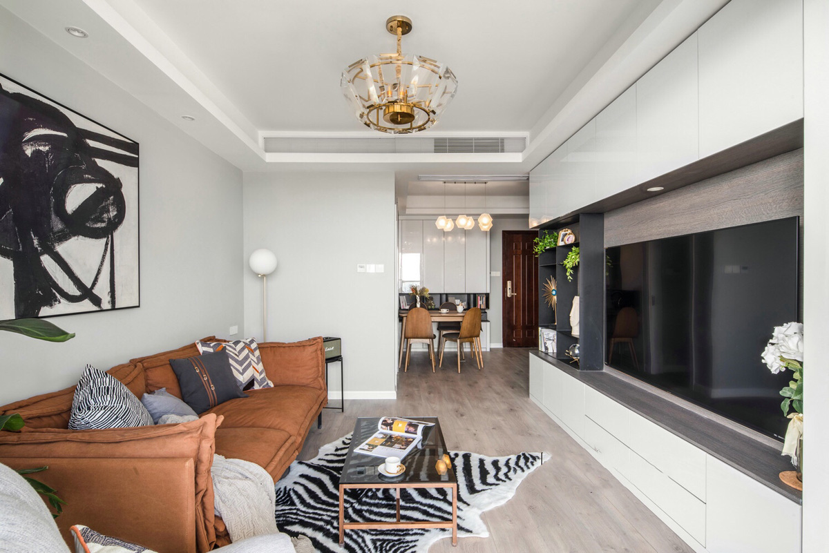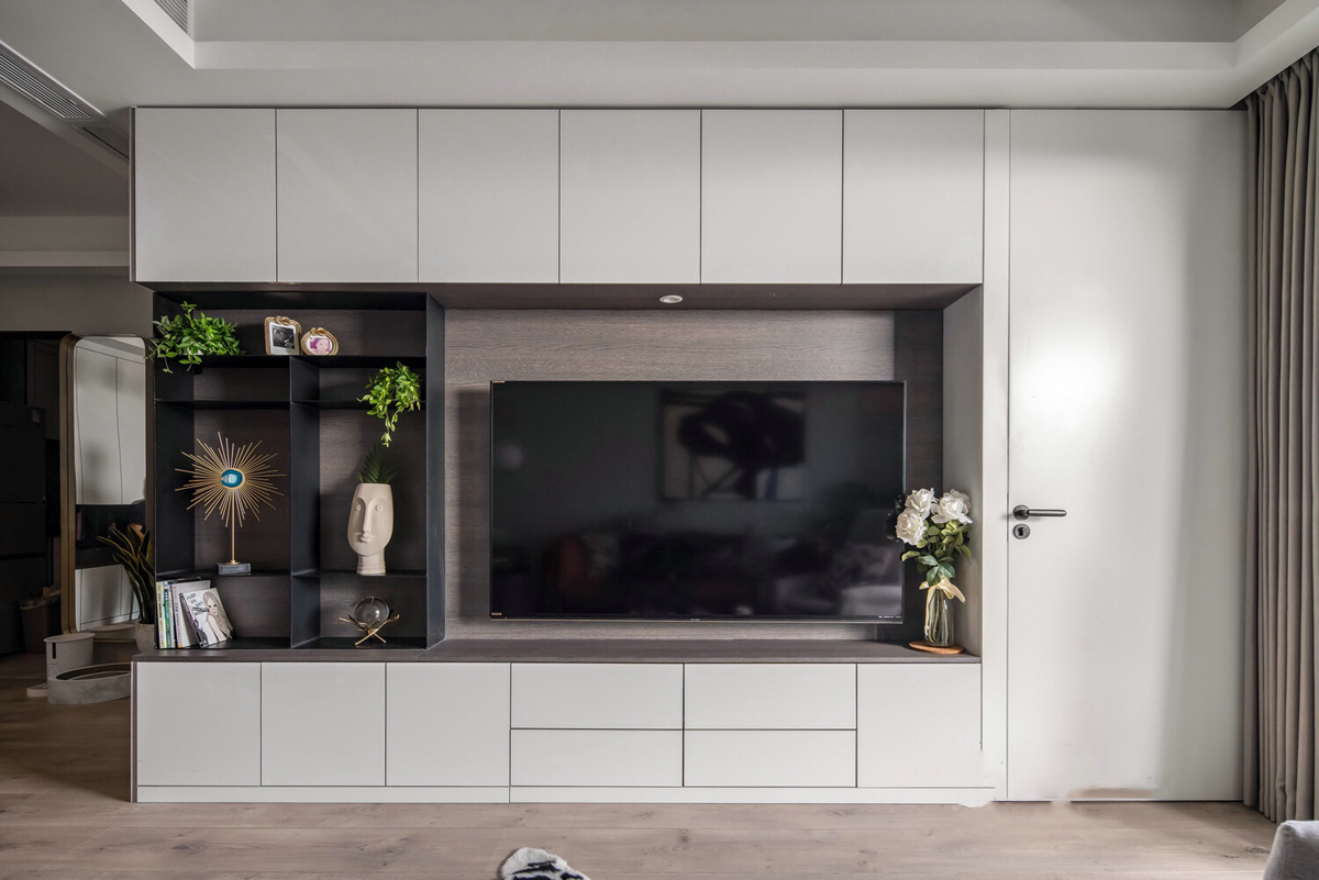 作为小户型空间,在客厅处做整面墙的电视柜,解决了收纳的需求,全屋铺地板,空间感更统一温馨。