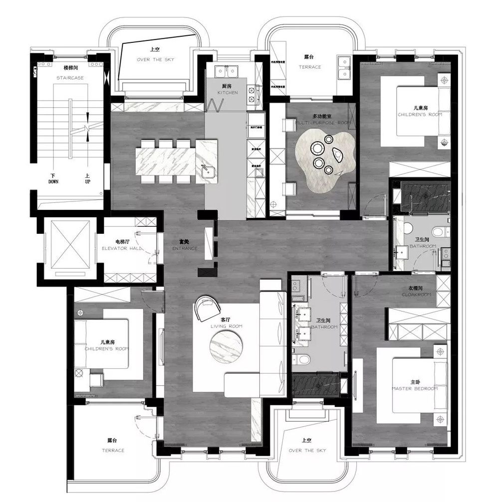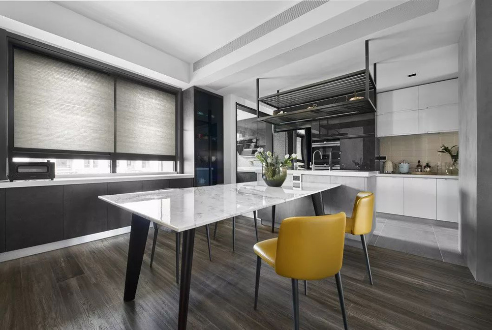 整个设计的重点是餐厅区域,作为一日三餐的产生地—厨房,总是被与生活、亲情、友情联系在一起,成为了一个家庭的温度所在。