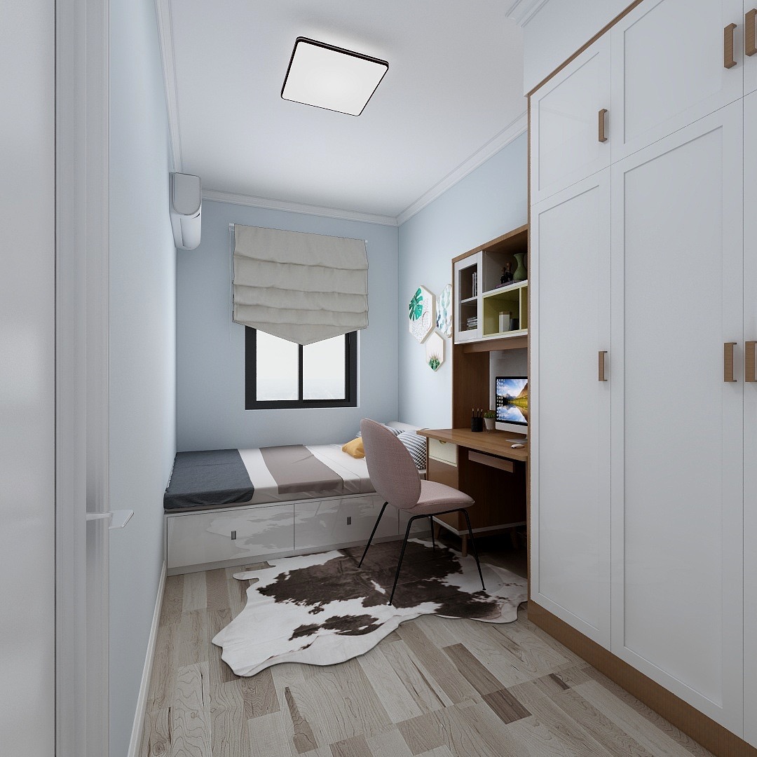 榻榻米节约空间,整个书房放了床,书桌,衣柜,空间动线还是很流畅的。