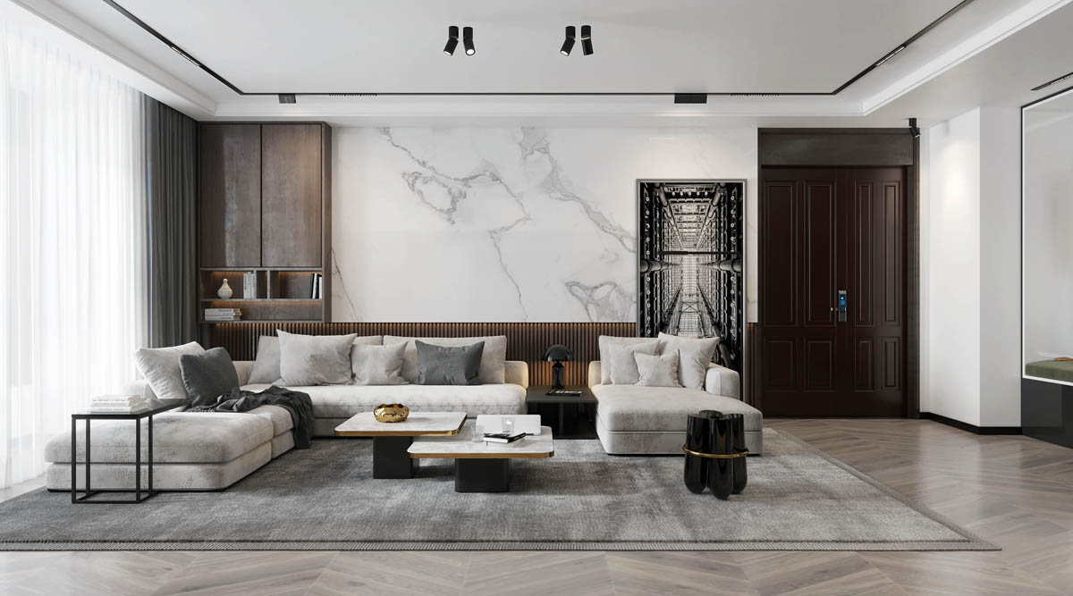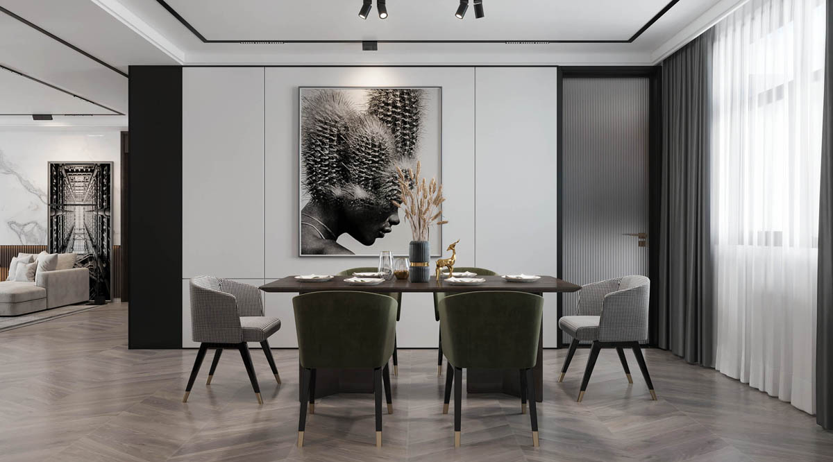 客厅布局简约清爽,以简洁为主没有多余的装饰,灰白色的墙面搭配舒适布艺沙发,营造出舒适宜居氛围。沙发墙利用一幅抽象画来填充空白墙面,既丰富了空间层次感,还让客厅不单调。
