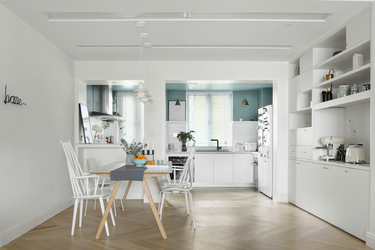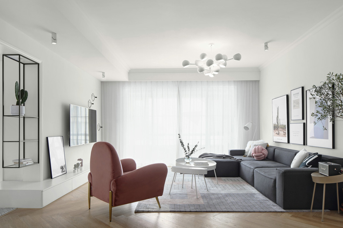 根据客厅空间大小,选择一件灰色系的布艺沙发,加几个现代简约的抱枕,一个不乏设计感的茶几,北欧风初印象就有了。