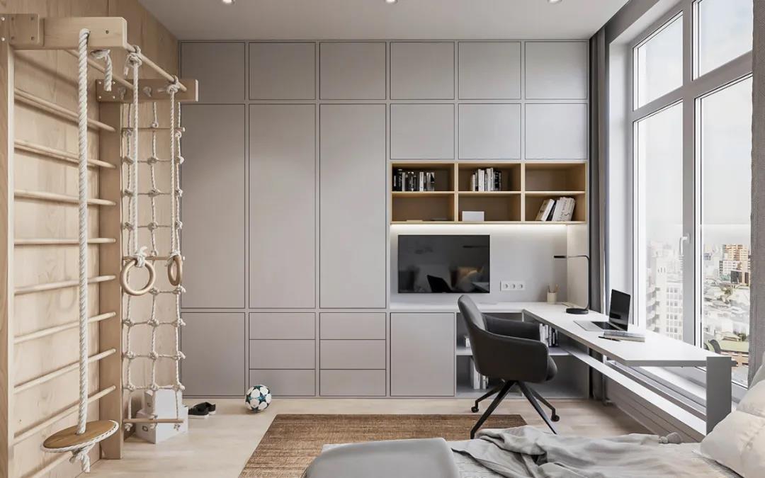 12岁以后,应该让孩子根据自己的兴趣爱好元素来布置空间,能让孩子更感受到尊重和自我空间的归属感。此阶段的孩子已经有自己的隐私需求,准备一个非开放性的柜子或者适当设置上锁的柜子是有必要的。